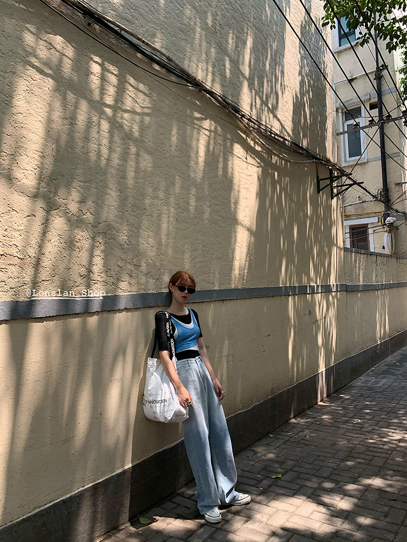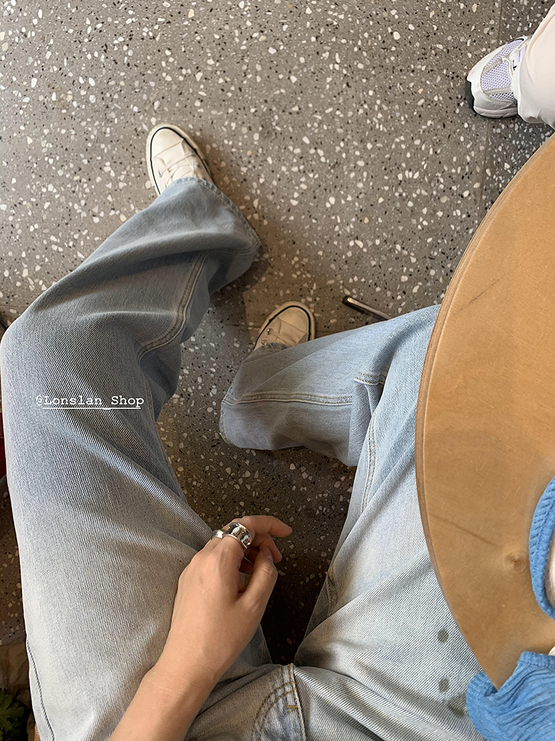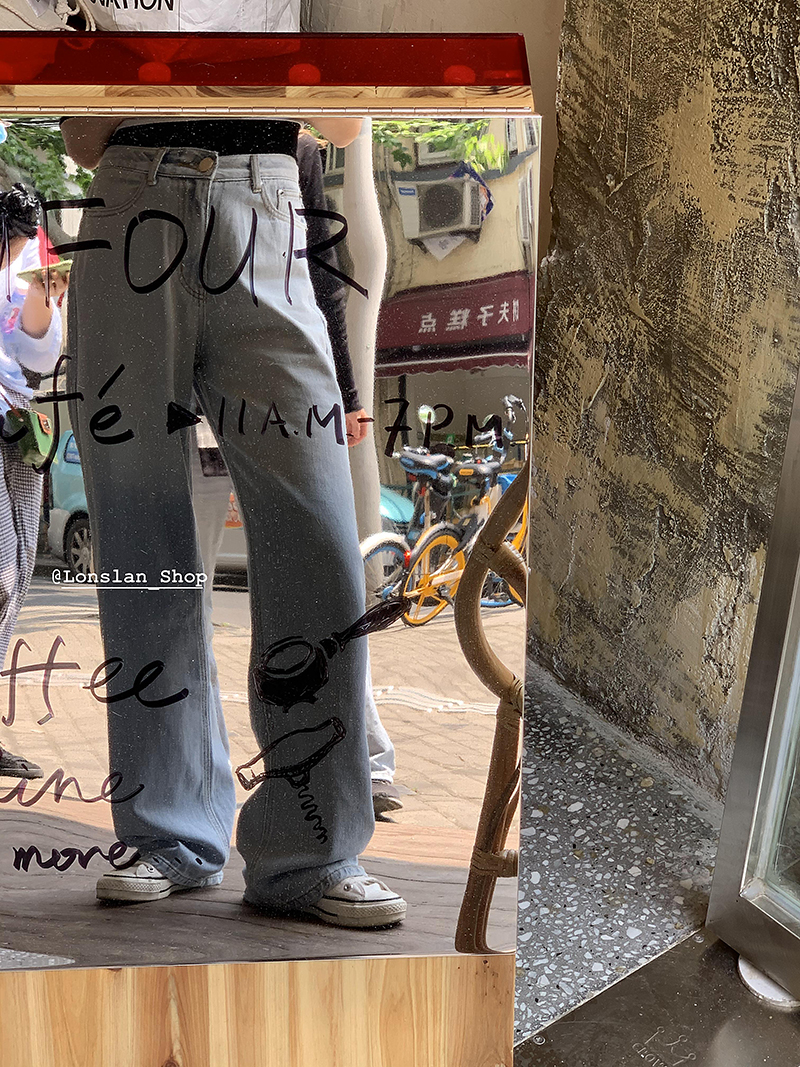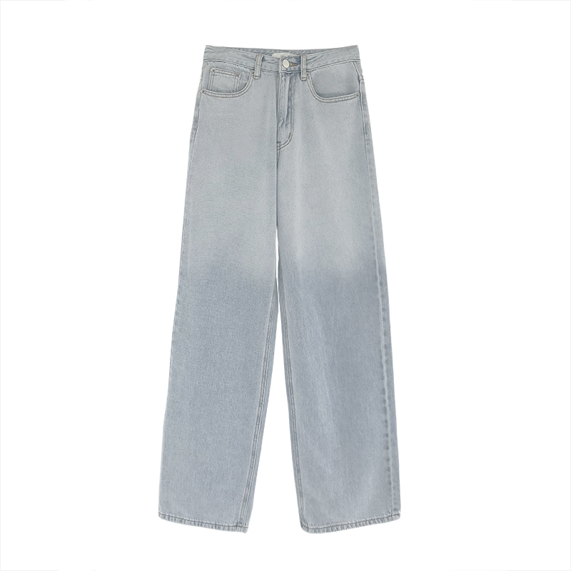 Lonslan2021SUMMER homemade small crowdsourced high waist loose with lean towering straight drum Gradual Layer Denim Pants Woman