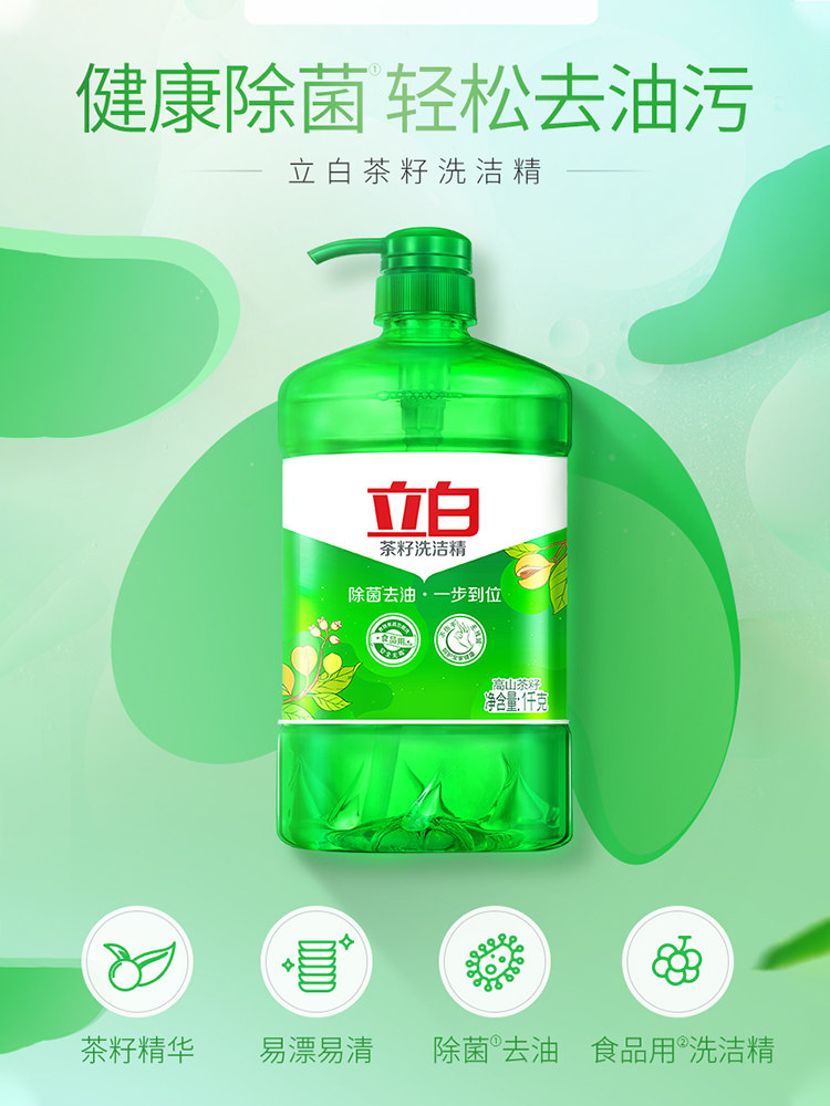 Libai tea seed detergent household affordable 1kg * 2 bottled degermizing oil fruit and vegetable dishwashing liquid detergent