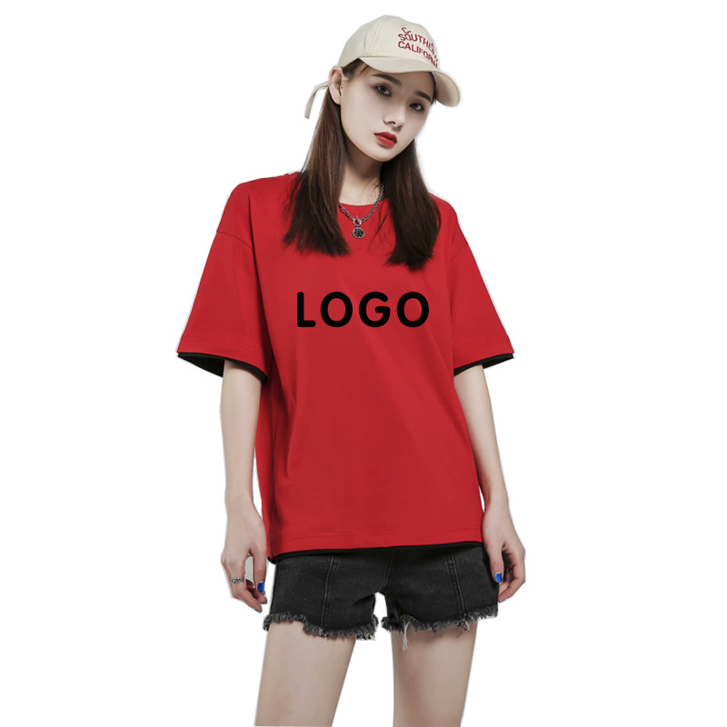 Wedding photography T-shirt five-quarter sleeves pure cotton dropped shoulders fake two pieces photo studio work clothes custom logo printing