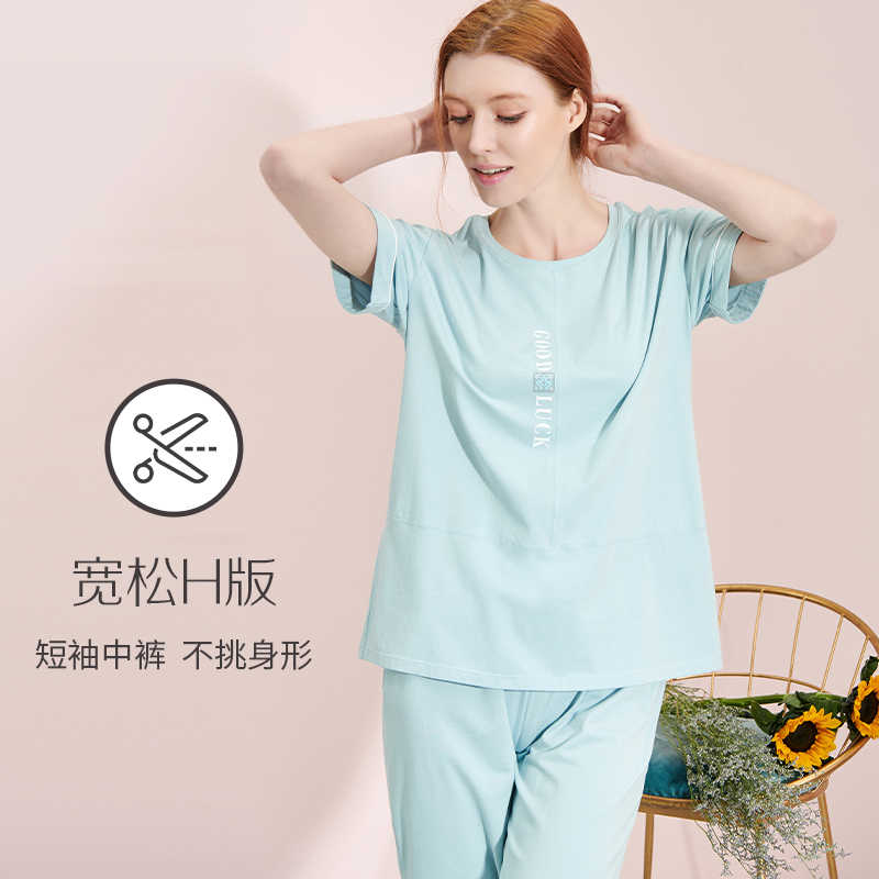 Huayou source Summer thin section Women's pure cotton Home Clothing Suit Large Size Code Brief Relaxation Summer Short Sleeves Two Sets Pyjamas