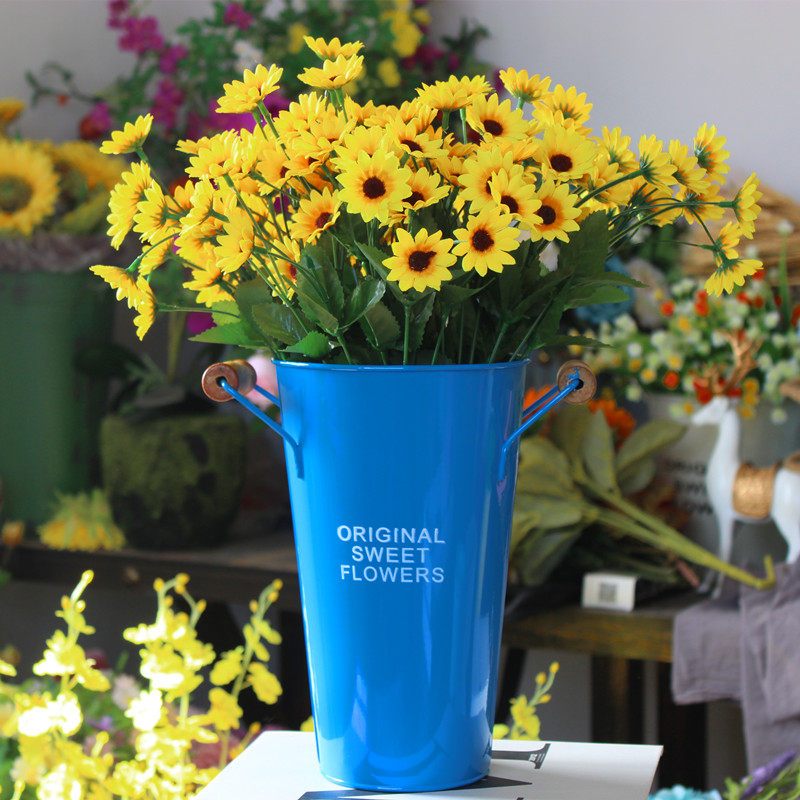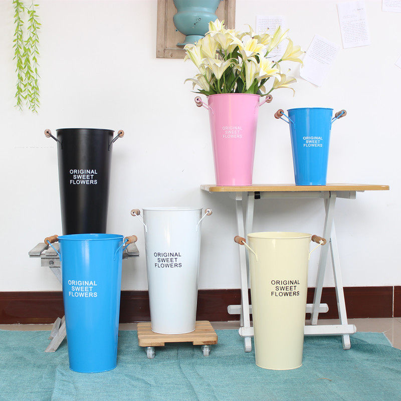Dried flowers flower arrangement bucket tin flower tube vase home wake up flower bucket flower bucket flower pot pastoral flower shop tin bucket
