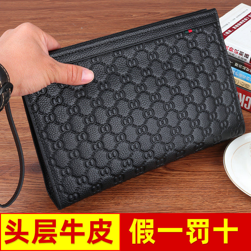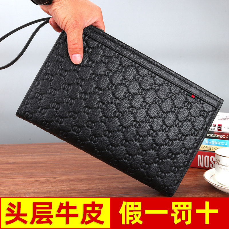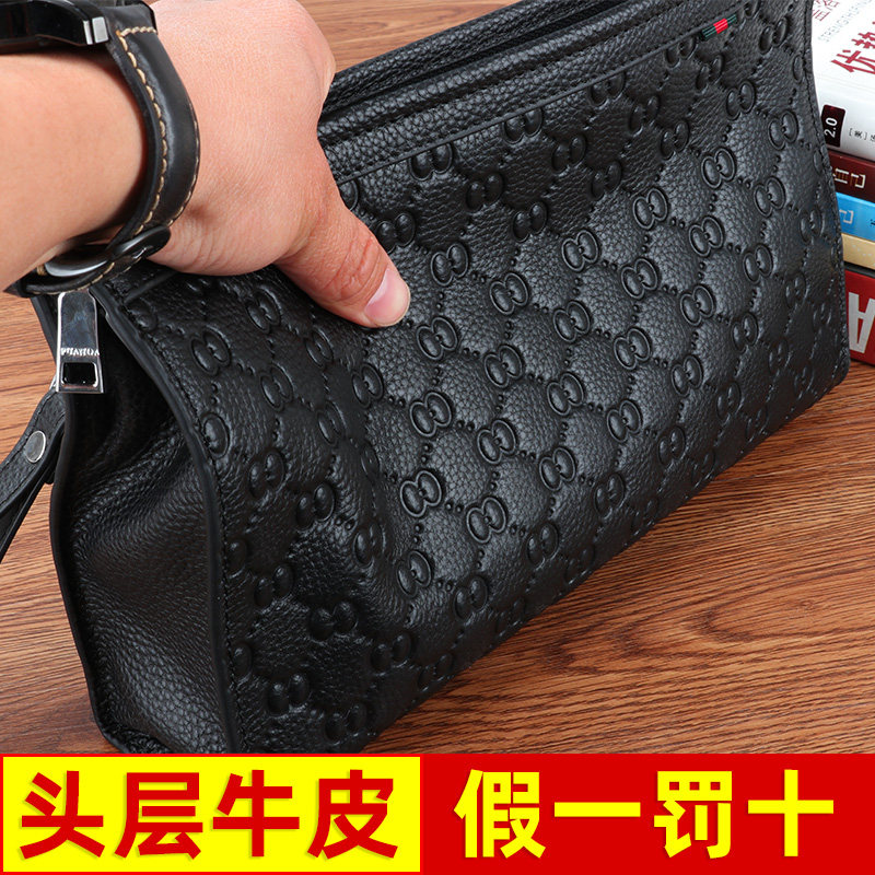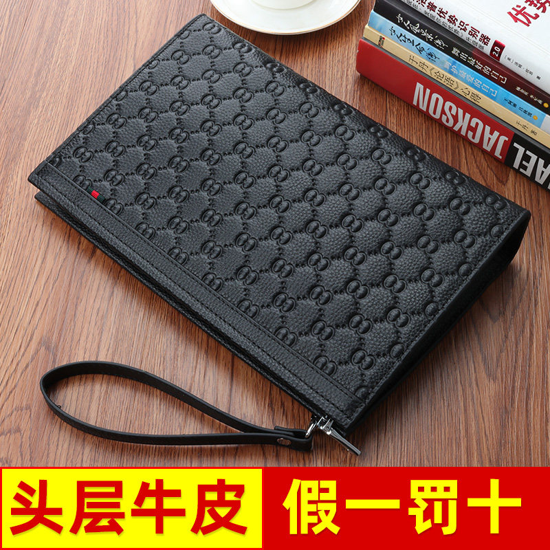 Hand Bag Men Genuine Leather Tide Large Capacity Brands Casual Genuine Leather Business Hand Grip Bag Men's Hands Bag Luxury Goods Clip Bag