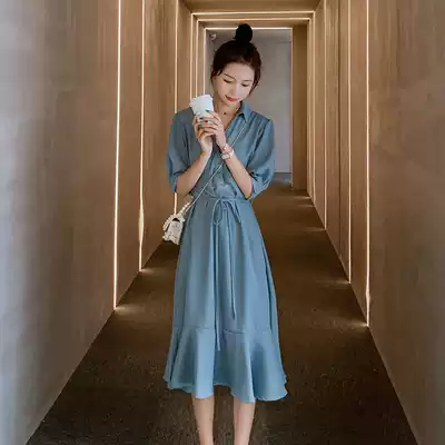 Chiffon shirt dress 2021 New Spring Hepburn style temperament thin light mature gentle French dress children summer