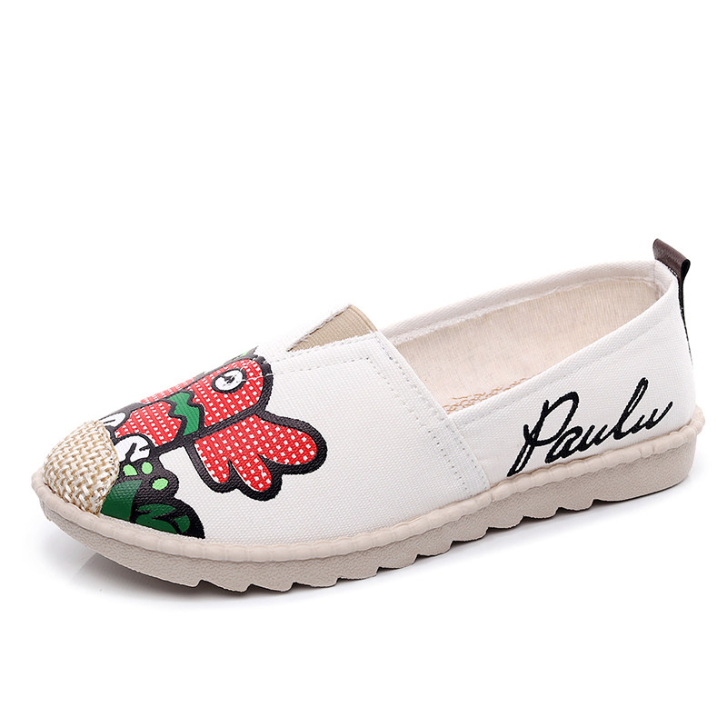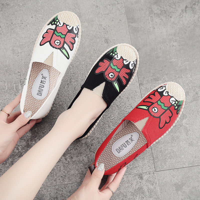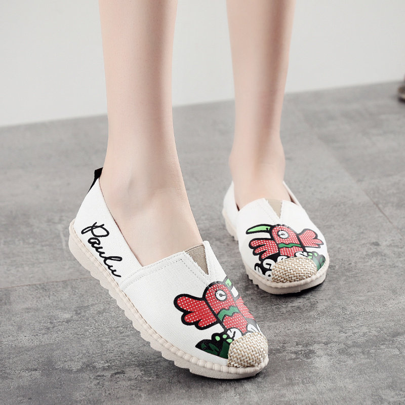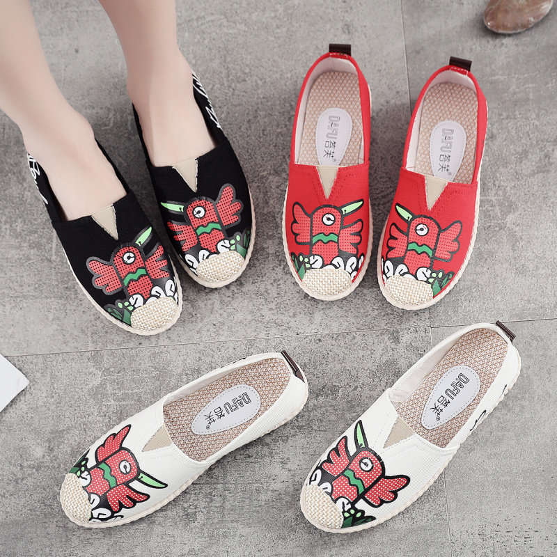 Crow print slip-on flat canvas shoes soft-soled fisherman shoes shallow mouth breathable single shoes old Beijing cloth shoes women's shoes
