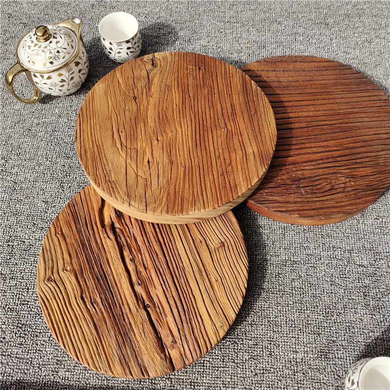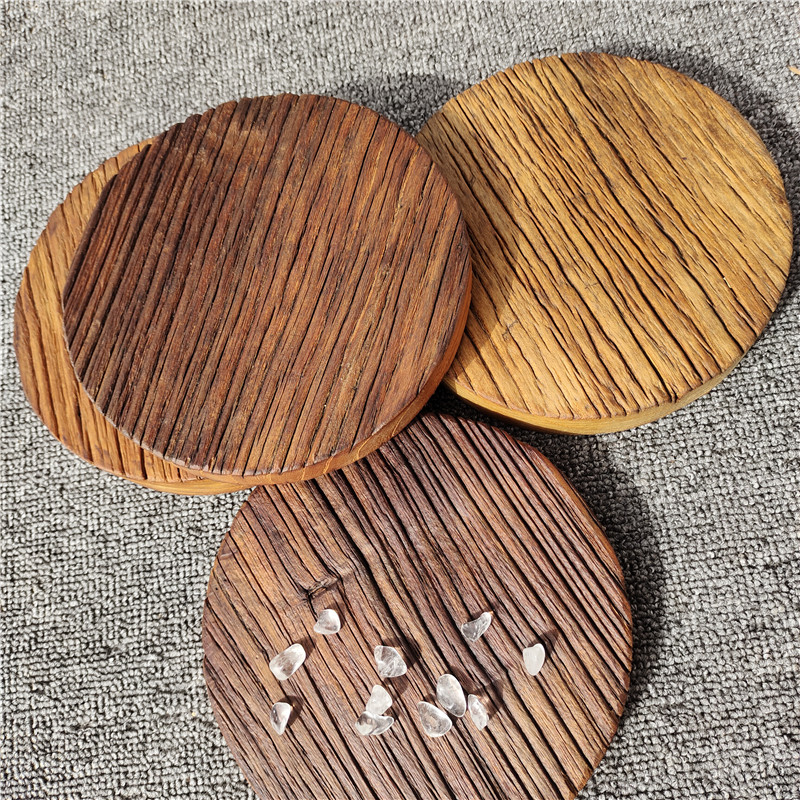 Old elm round solid wood simple pot bearing coaster Zen old wooden cup holder Kung Fu tea with dry brewing table creative cup holder