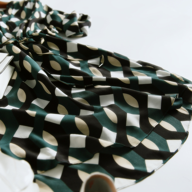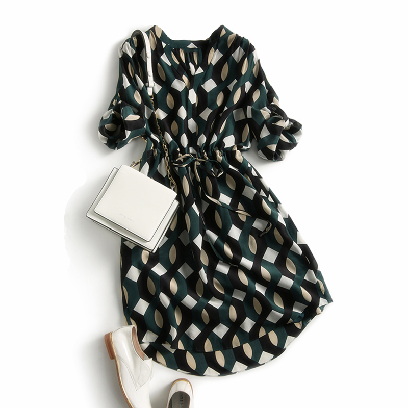 Summer thin V-neck waist covering belly looks lean temperament chic French small silk mulberry silk dress
