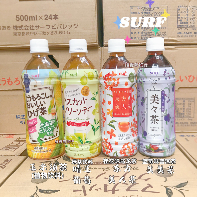 Japan imports SURF Safu Hokkaido corn whisker tea musk white grape juice green tea drink 500ml