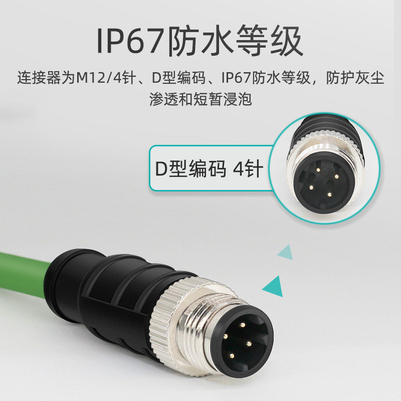 M12 to RJ45 coded wire elbow 4 pin Ethernet industrial network cable 4 core cable D type high soft e-chain® sensor cable Straight head aviation plug