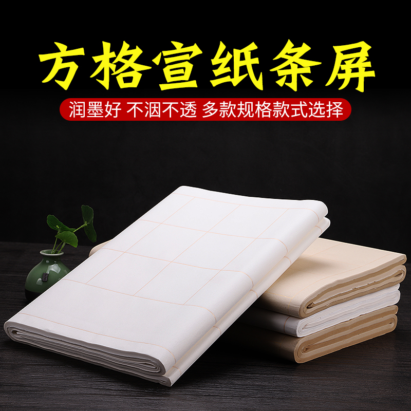 Checked rice paper strip screen brush calligraphy works paper special paper calligraphy grading test special rice paper grid four feet off three open four half raw and half ripe brush competition works antique grading paper