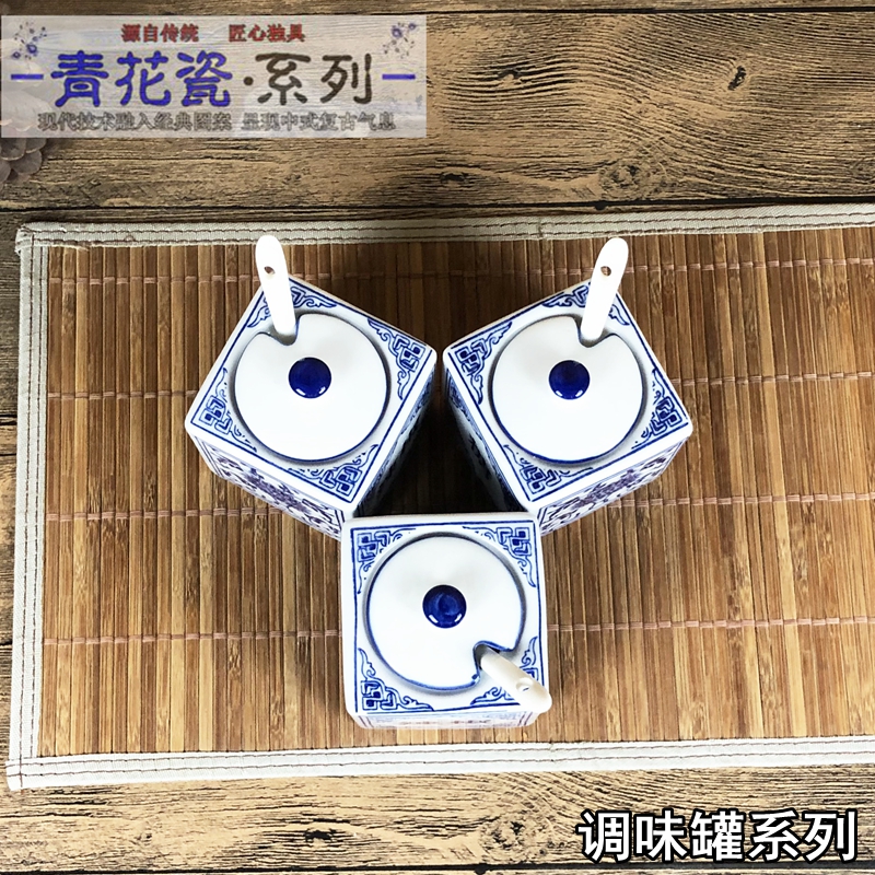 Ceramic Seasoning Bottle Green Flower porcelain seasoning box Chinese imitation antique chilli salt MSG garlic candy jar sauce oil vinegar jar chopstick cylinder