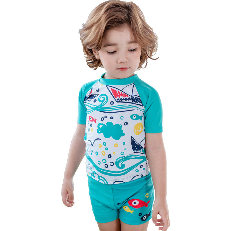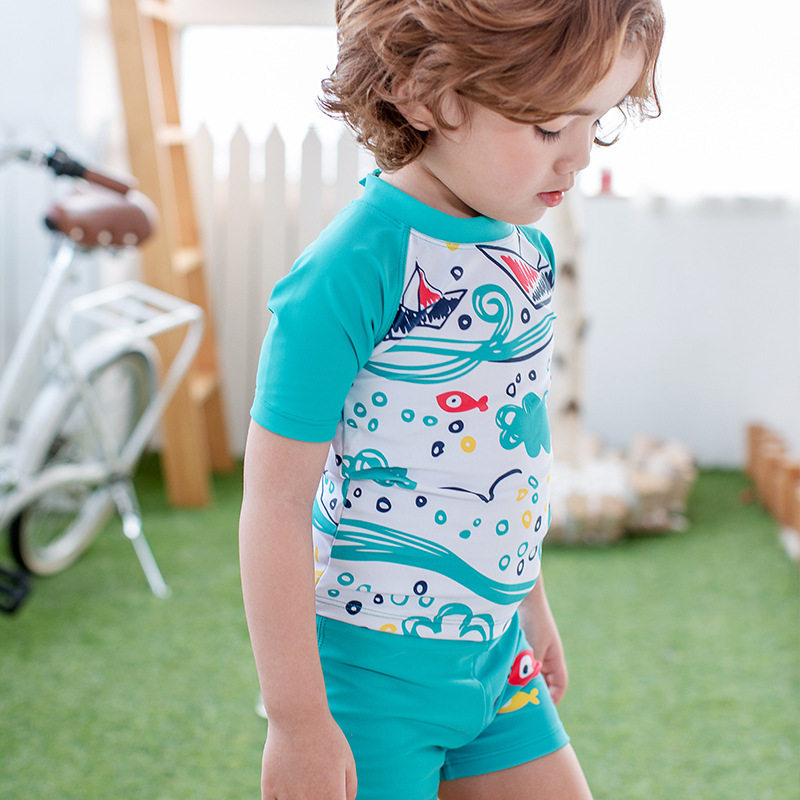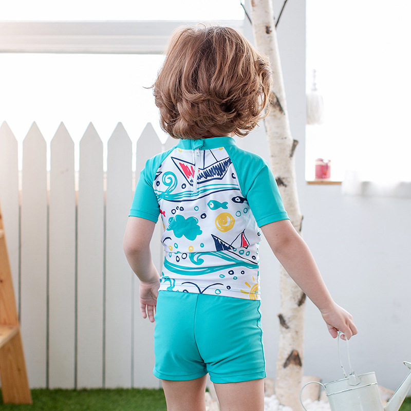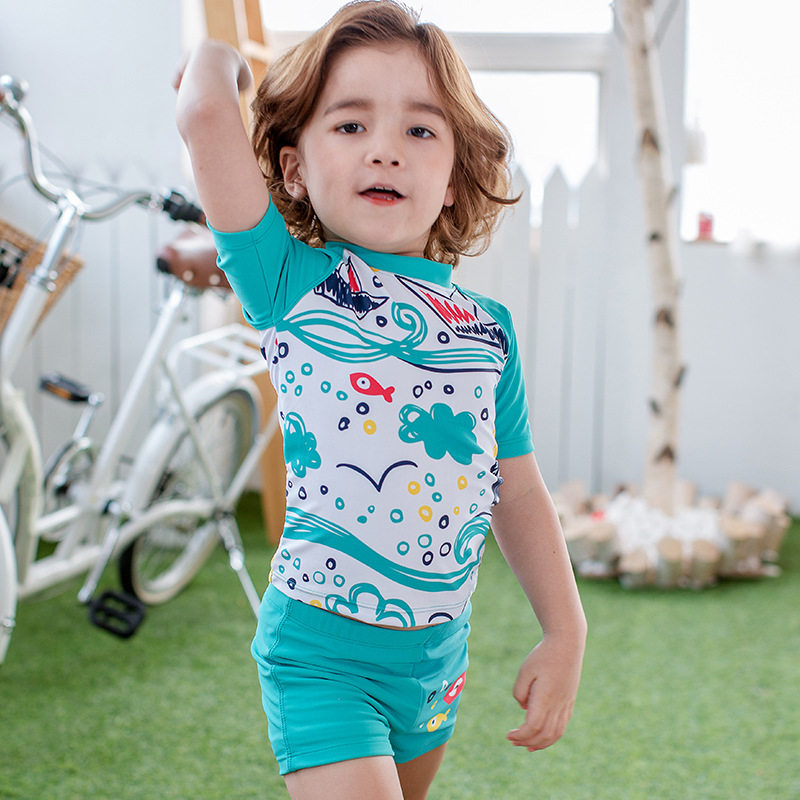 Children's Swimsuit Boy's Split Swimsuit Cute Toddler Baby's Middle Child Spa Sunscreen Quick Dry Blue Ocean