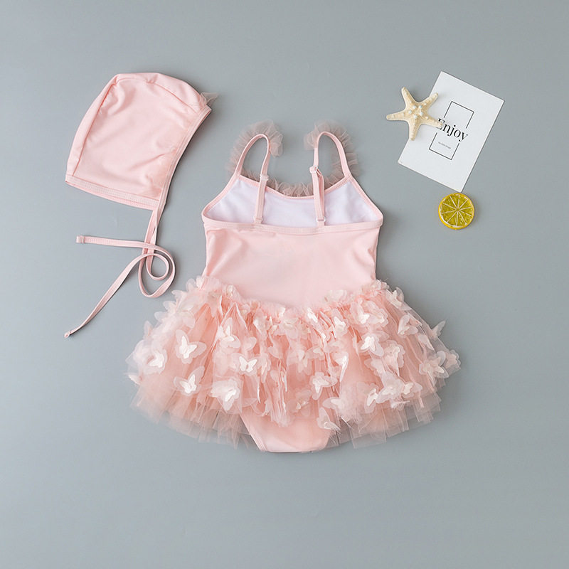 Children swimsuit girl swimsuit baby with dress style girl holiday baby butterfly yarn dress walking show swimsuit