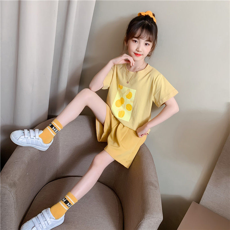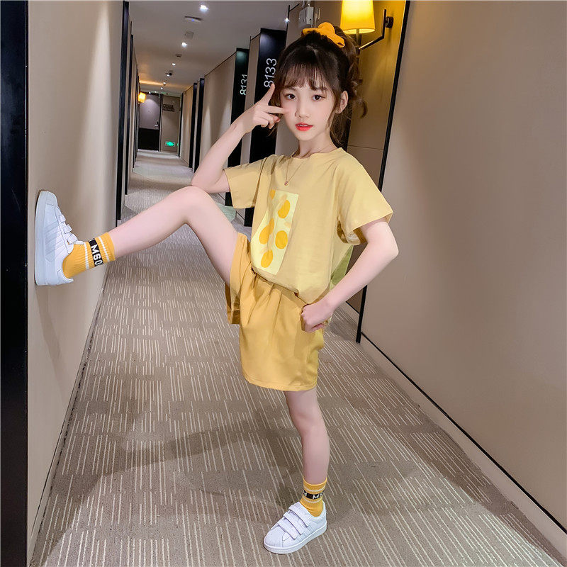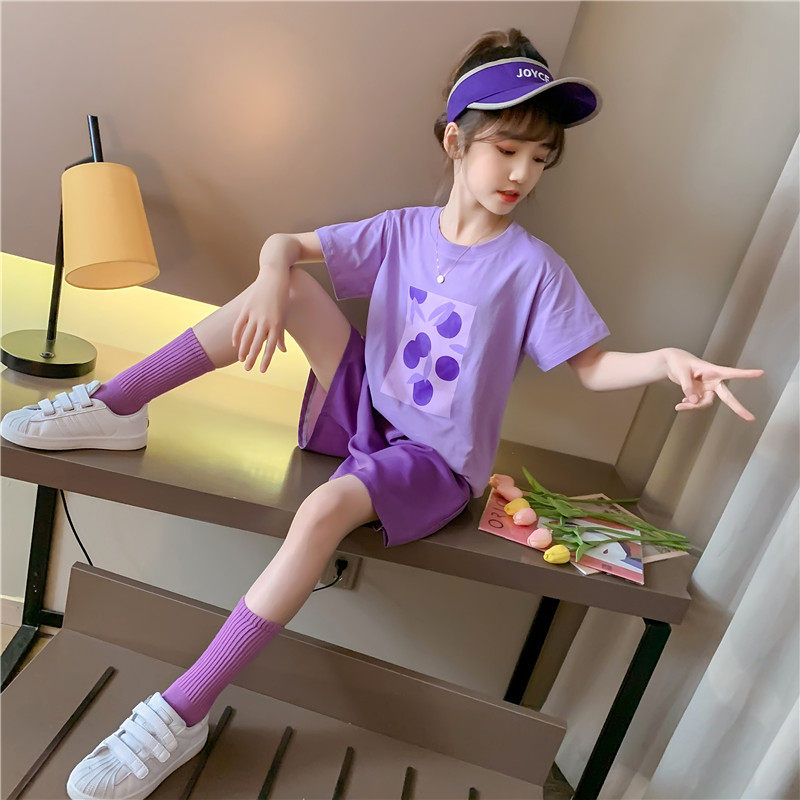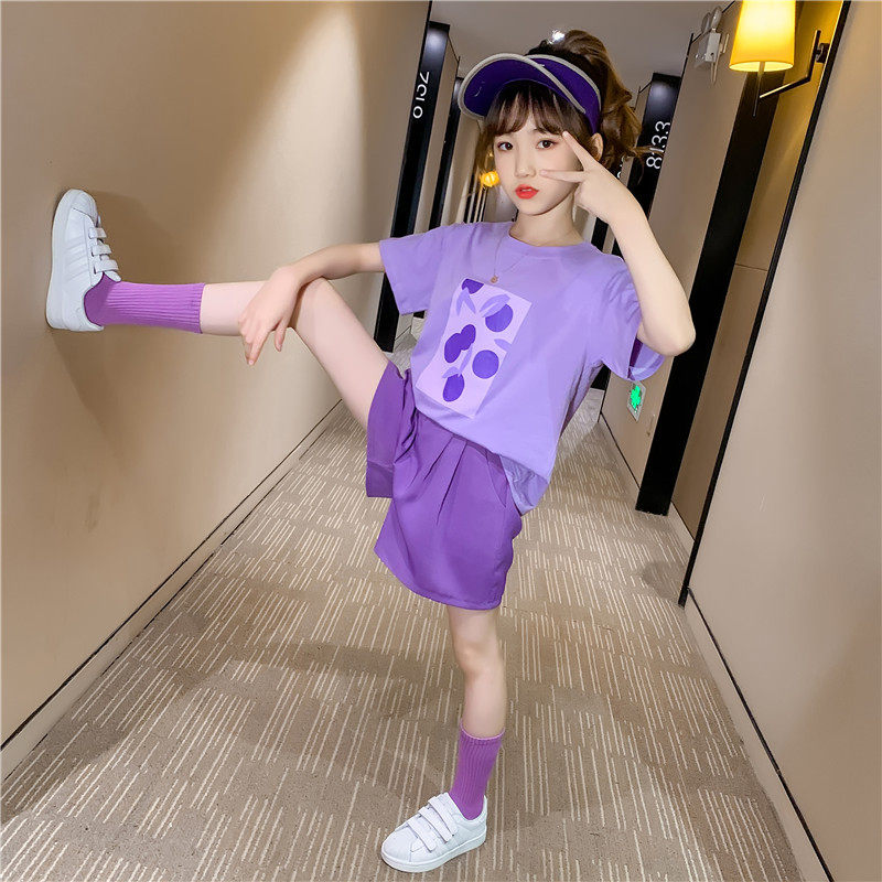 Girls summer suit 2022 new Korean version children's net red purple two-piece summer girl trendy children's clothing Western style