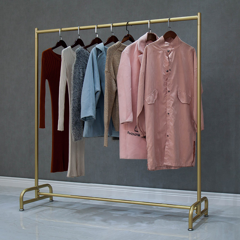 Simple modern clothing hanger floor-to-ceiling cloak rack bedroom net red gold water pipe gantry shelf shelves with wheels