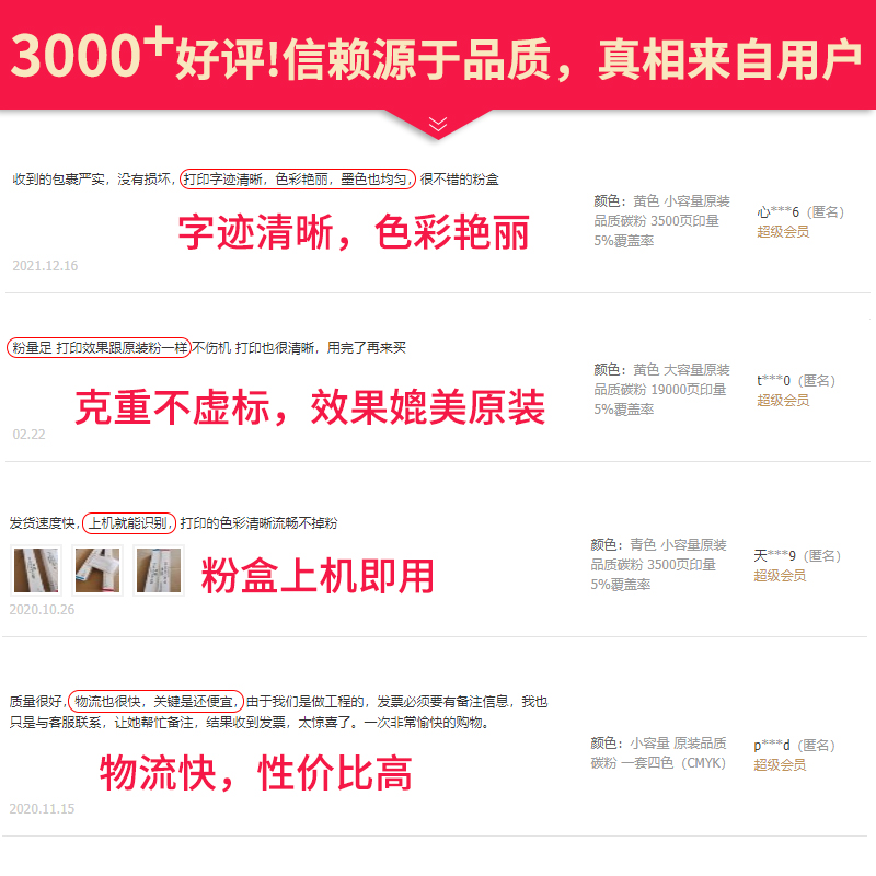 Black Small-Capacity Original Quality Carbon Powder 5500 Page Inquantity 5% Coverage Red Small Cap Original Quality Carbon Powder 3500 Page Inquantity 5% Coverage Yellow Small Cap