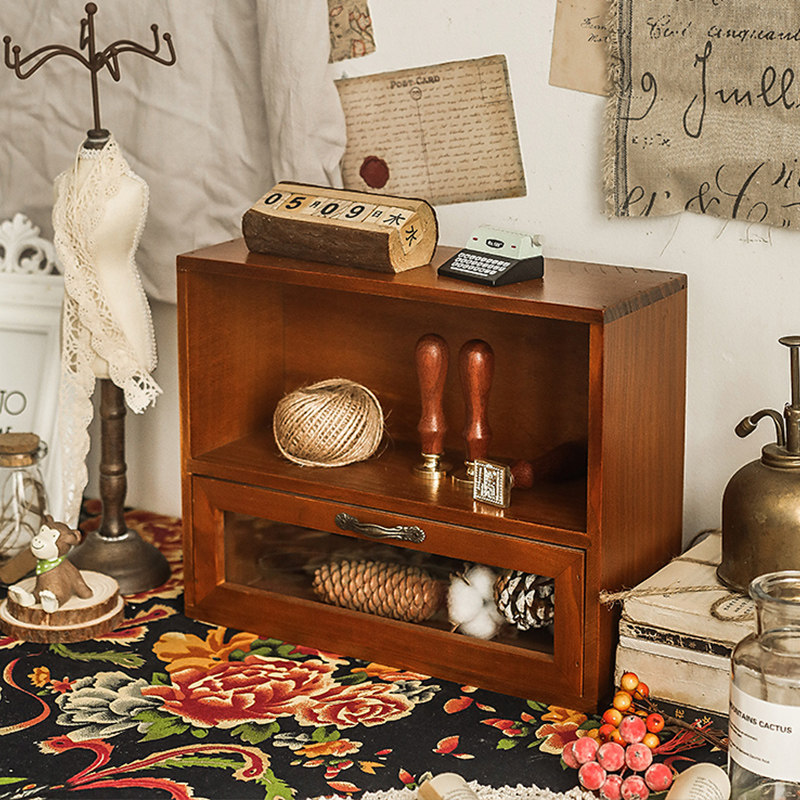 Desktop storage box desk zakka cabinet drawer type retro Cup cosmetics shelf table wooden