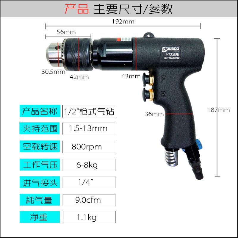 JUBOO giant cypress pneumatic pistol drill forward and reverse wind drill industrial grade gun-type air drill high-speed drilling machine tapping machine