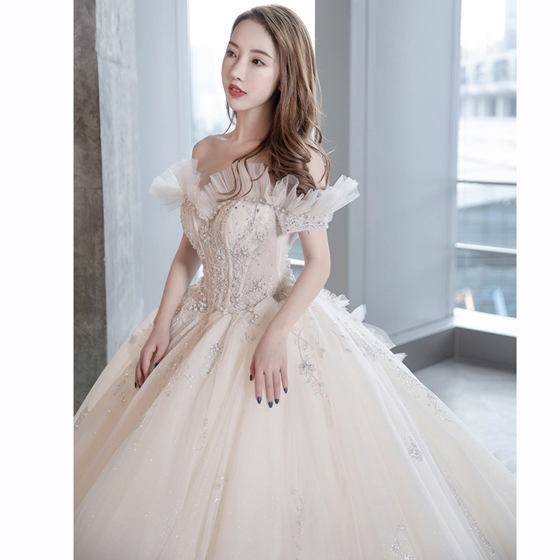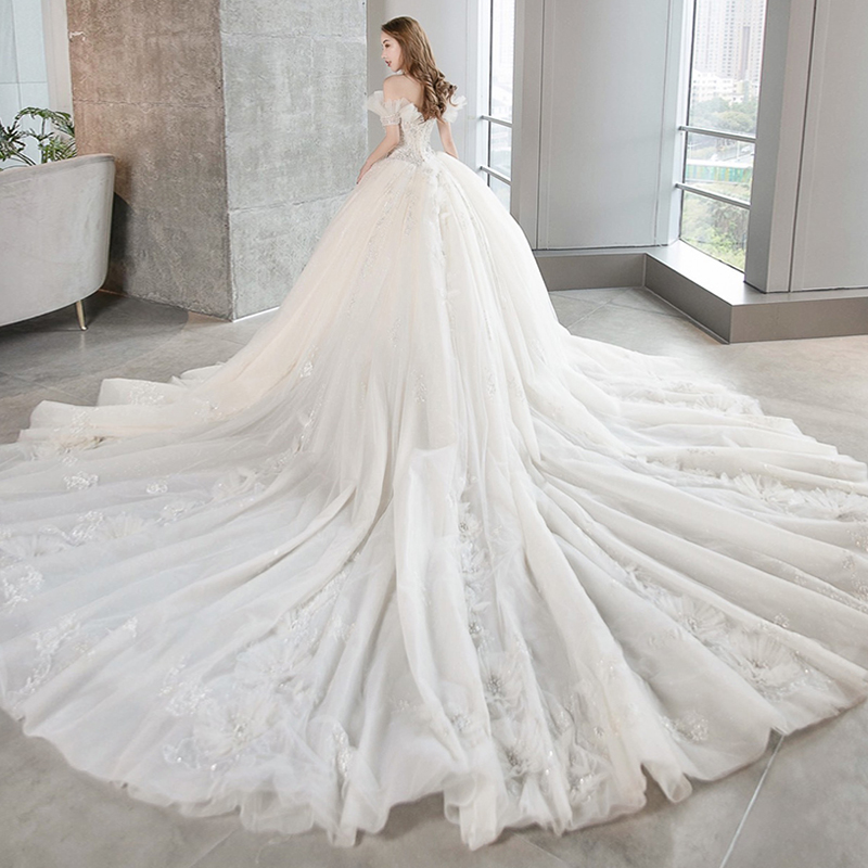 Forest department main light wedding dress 2021 new bridal temperament word shoulder big tail small man super fairy dream high-end woman