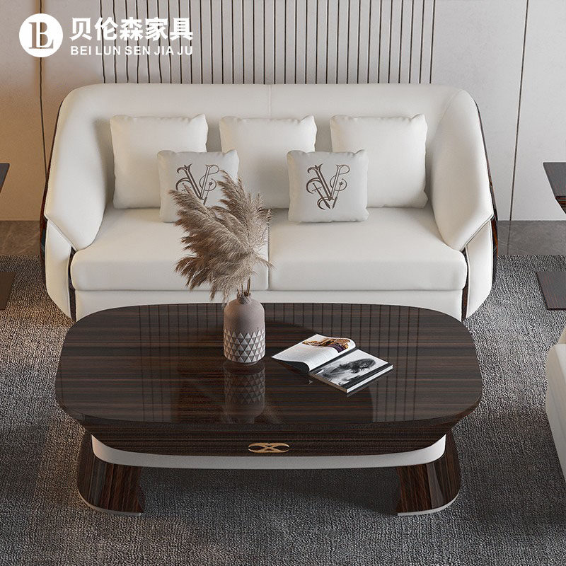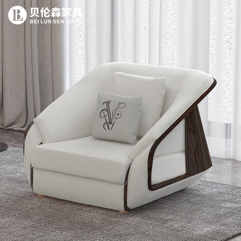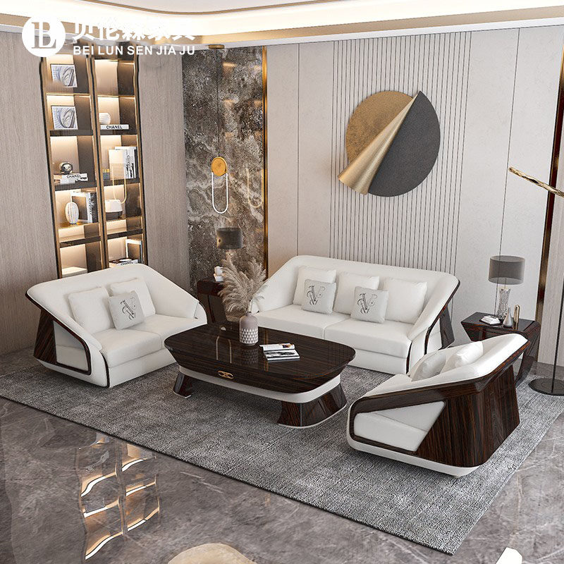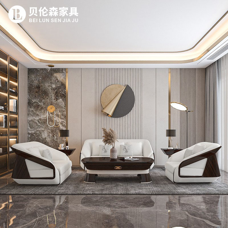 Berenson post-modern light luxury leather sofa 123 combination Italian villa living room Hong Kong-style high-end solid wood furniture