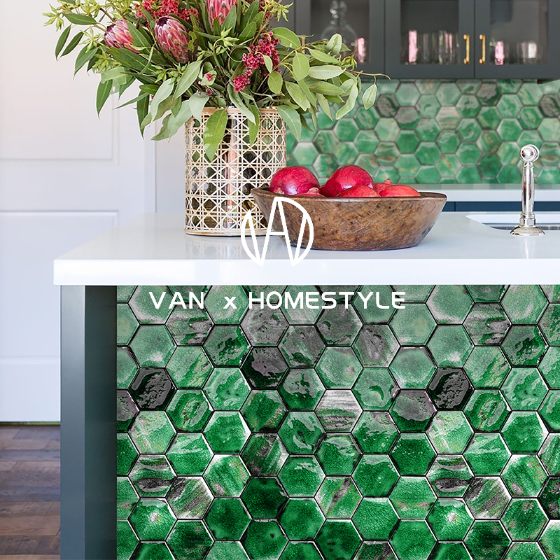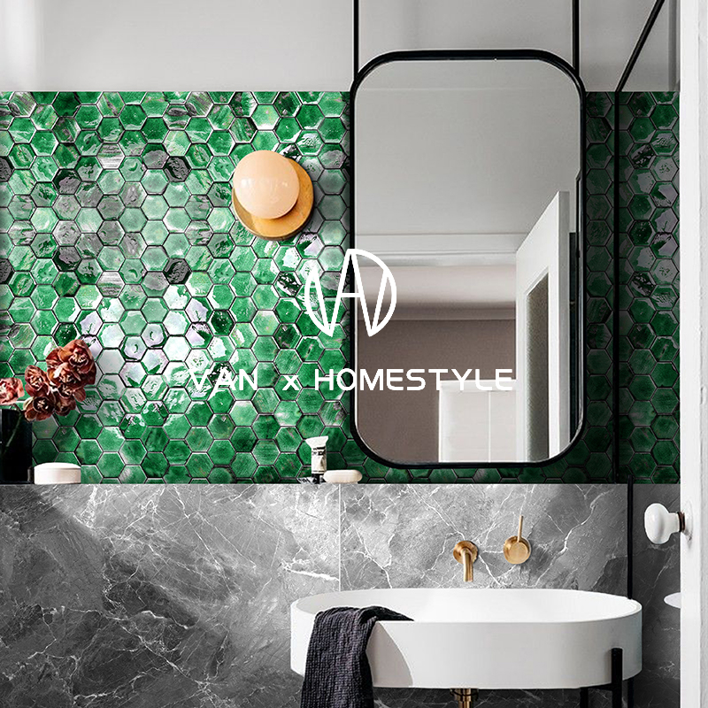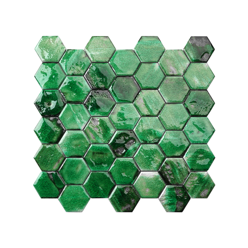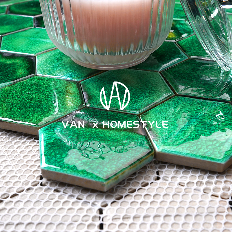 Vanne dark green handmade small hexagonal mosaic retro kitchen bar tile bathroom bathroom background wall
