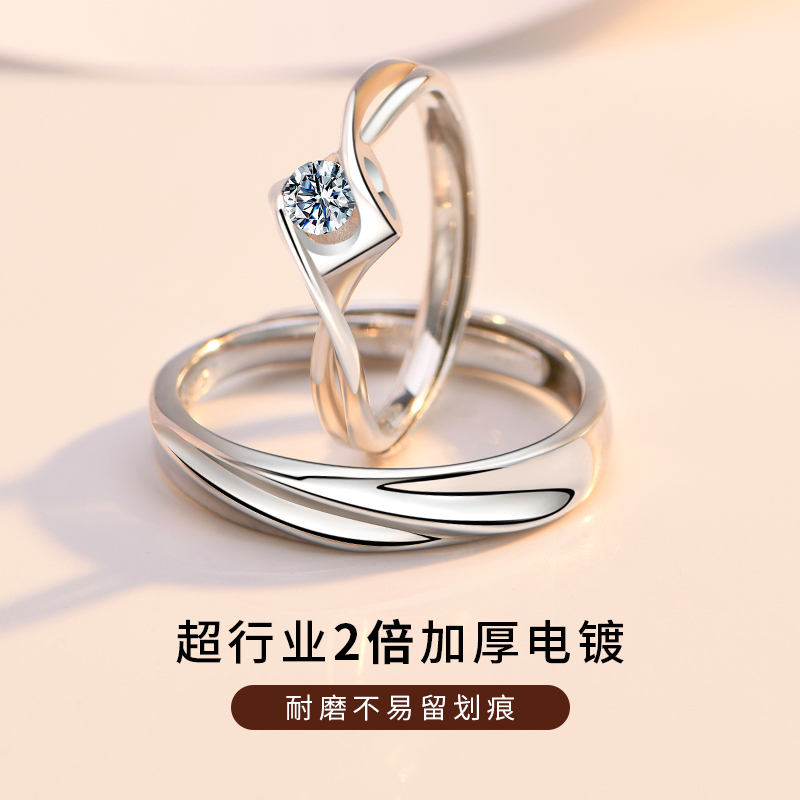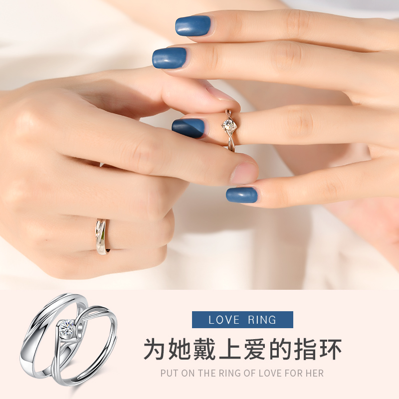 Sterling silver couple rings a couple of niche design ring fashion personality ring birthday gift for girlfriend - Taobao