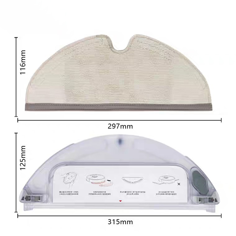 Water tank * 1 Rag * 2 Water tank * 1 Rag*4 Water tank rag*2 Rag*4 Main brush * side brush * 2 Filter * 2 Water core 1 box Universal wheel main brush cover virtual wall 2m Stone dust box*1