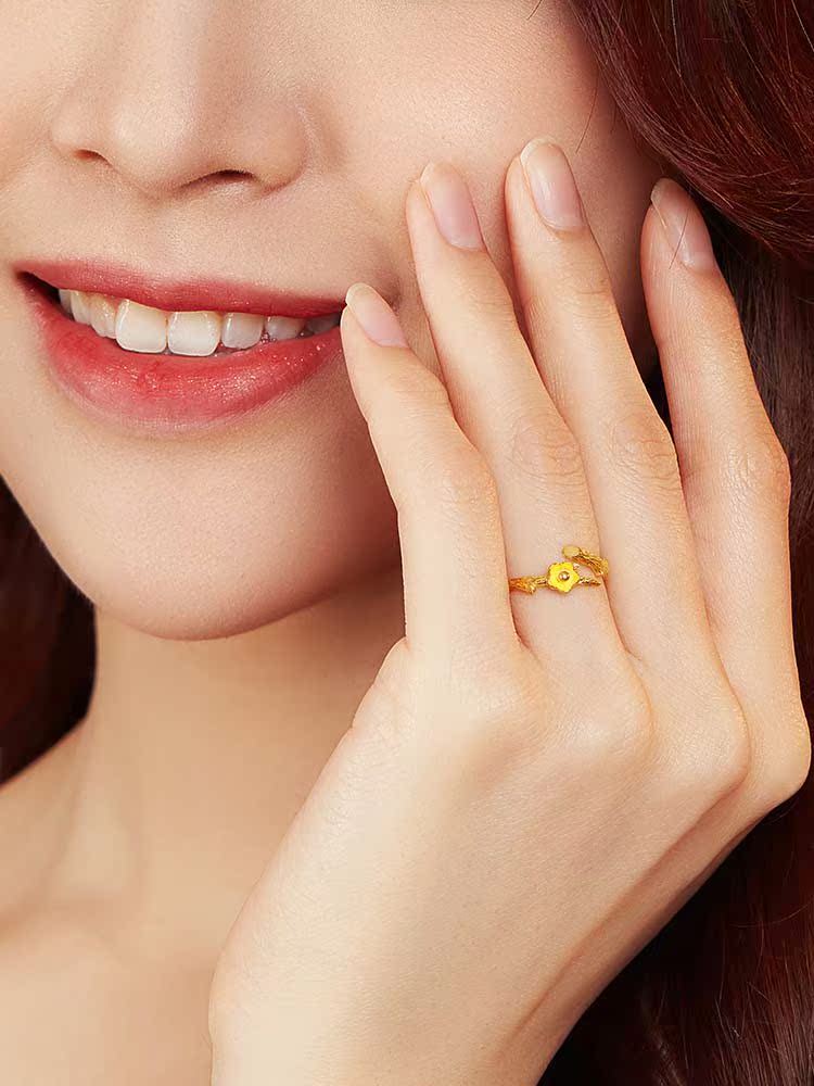 Luk Fook Jewelry Plum Blossom Gold Ring Women's Open Ring Full Gold Gift Valuation L35TBGR0005