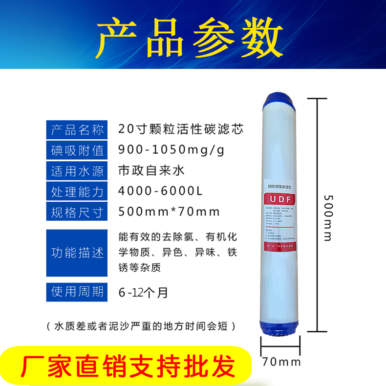 Quality 20-inch granular activated carbon UDF filter core Automatic vending machine Commercial water purifier 2nd grade universal filter