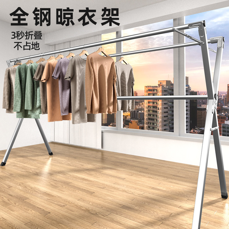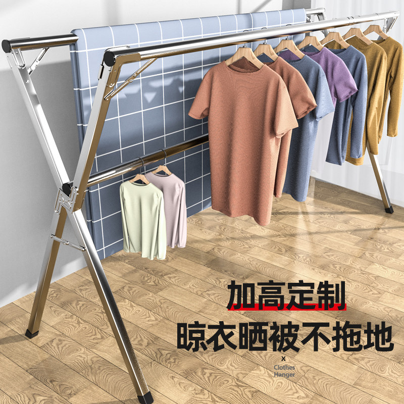 Folding clothes rack Floor-to-ceiling bedroom indoor household balcony cool clothes rod Stainless steel outdoor telescopic drying quilt artifact