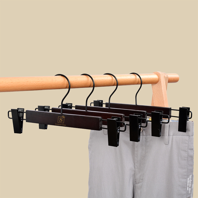Solid Wood Pants Rack Clothing Shop Pants Clip Home No-Scratched Pants Hanging Woman Skirt Multifunction With Clip Cabinet Briefs Hanger