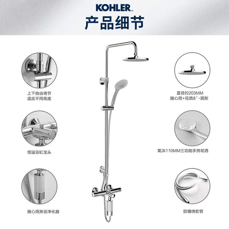 Kohler shower head thermostatic suit Home hanging wall type Three-water Corler bathroom shower water purifying shower 26471T
