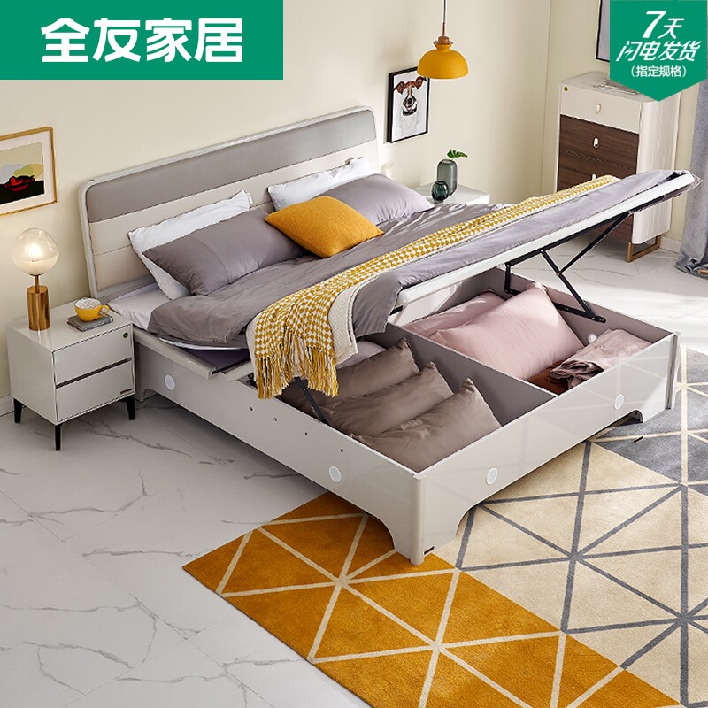 Quanyou Home Soft Double Bed Modern Luxury Plate Bed 1 5 m 1 8m Storage Bed High Box Bed 126103