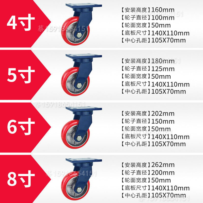 Super heavy caster universal wheel 4 inch 5 inch 6 inch 8 inch labor-saving arc iron core polyurethane pu wheel load wheel