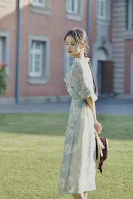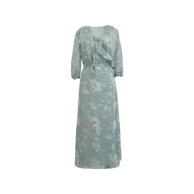 WANTING night "Xiaolin tea" fresh print one piece wrapped body retro French girl dress New