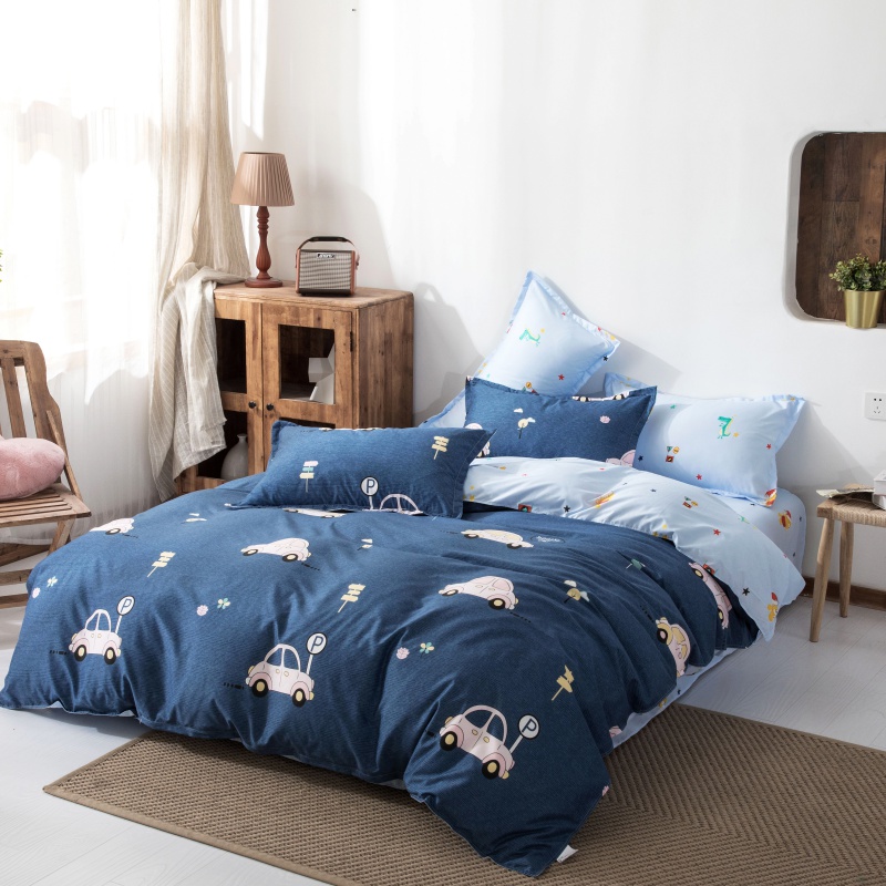 Net red three or four pieces of bed washing cotton dormitory single student bed sheet condom by single-person spinning