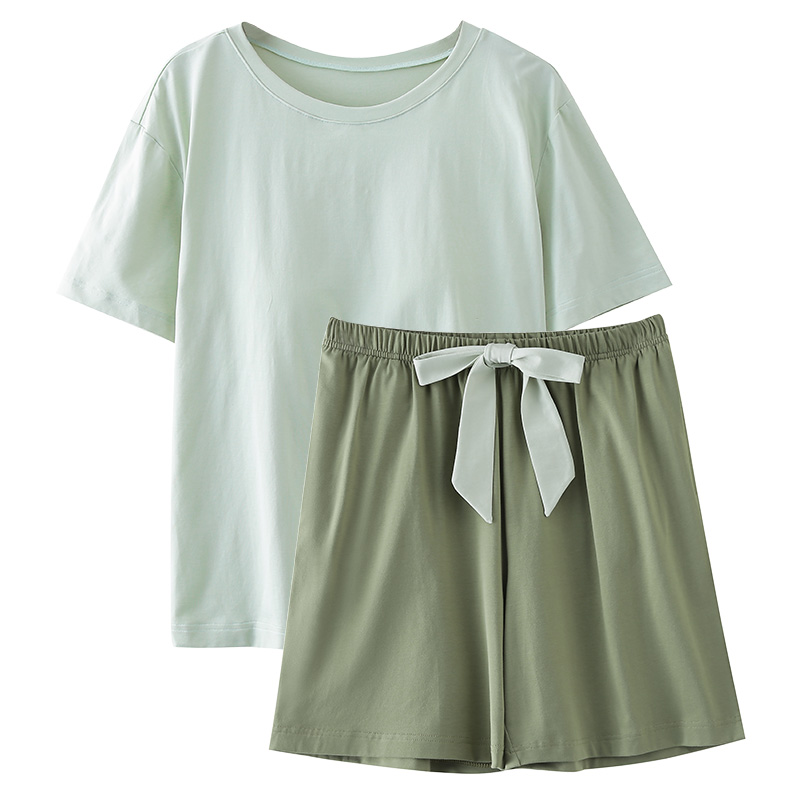 Pajamas women with chest pads can go out in summer thin cotton with bra wear short-sleeved home wear suit 2021 new