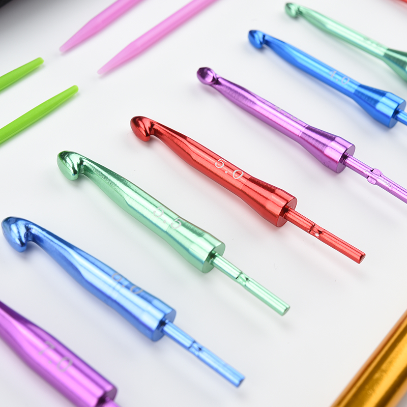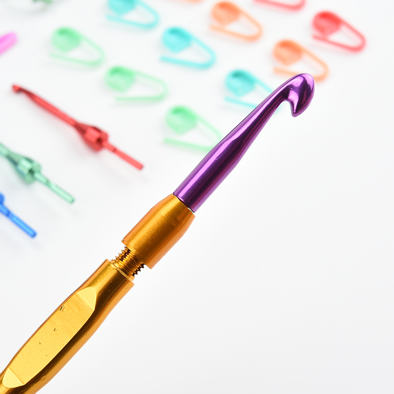 Removable heads color aluminum hook needle tool set with removable hook needle sweater hand needle knitting tool