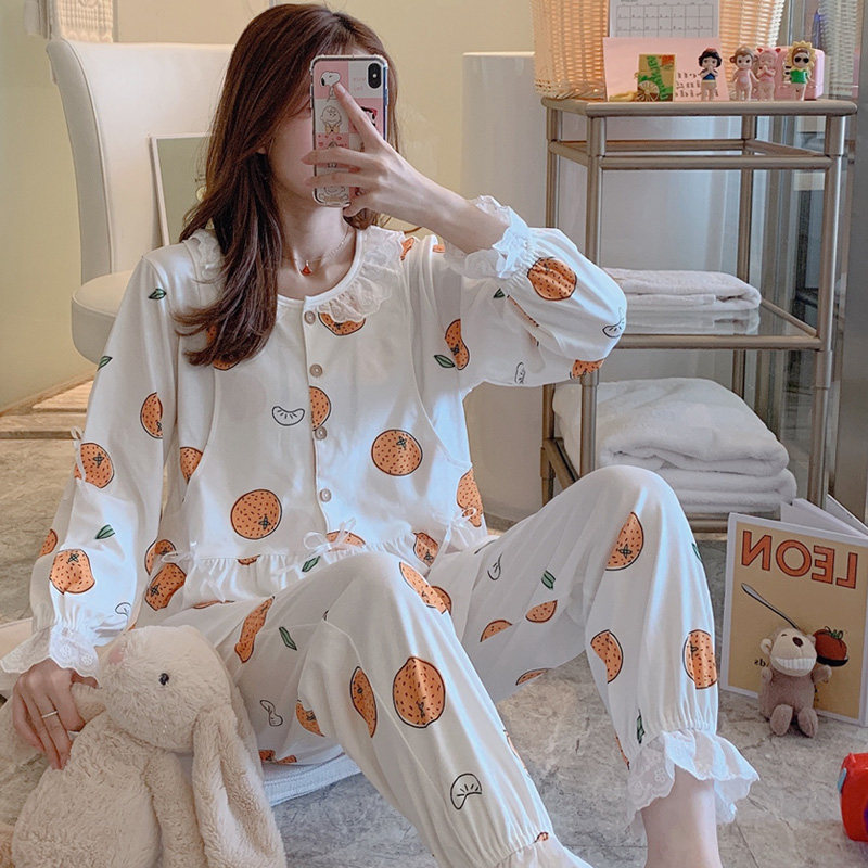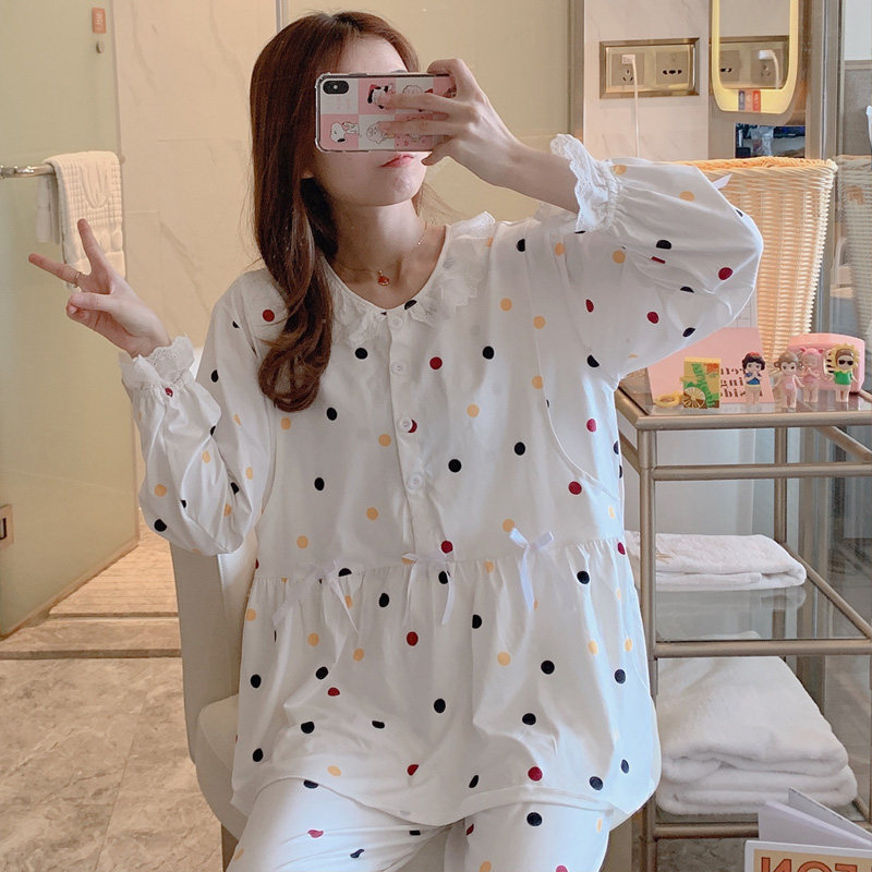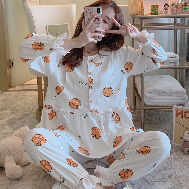 Moon clothing cotton sweat sucking 5 months after birth in June pregnant women's pajamas breastfeeding spring and summer cartoon fashion breast-feeding clothes