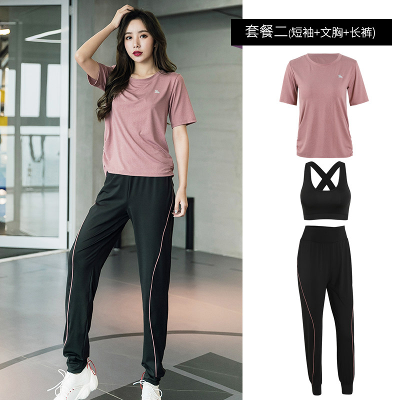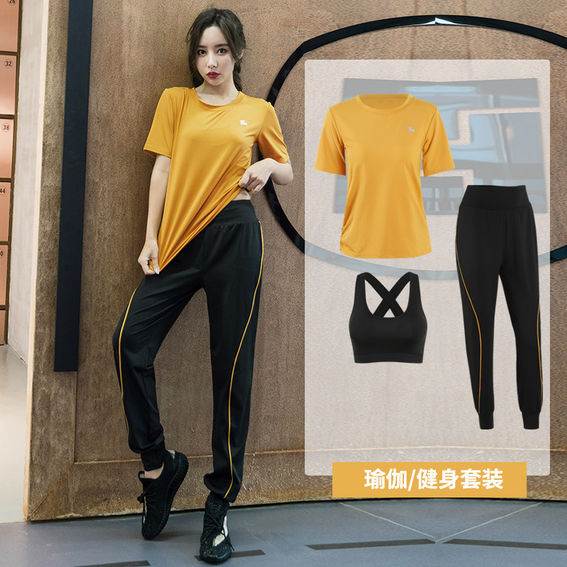 Yoga suit Summer speed dry breathable short sleeves large size Loose Long Pants Thin brilliance Morning Running Fitness Room Sports Suit Women