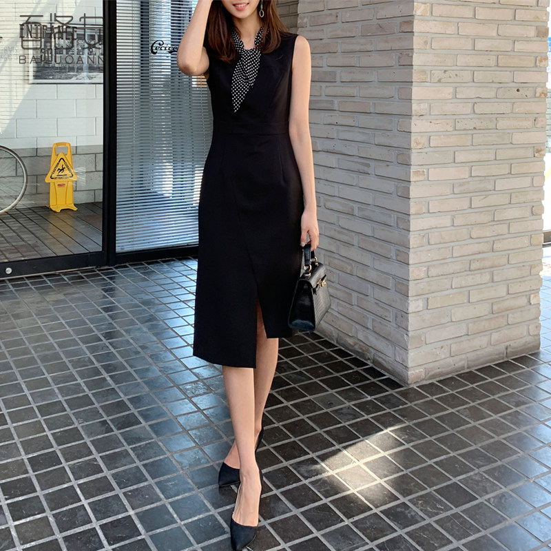Beloan sleeveless dress Mid-length dress summer new temperament streamers irregular hem split split one-step skirt
