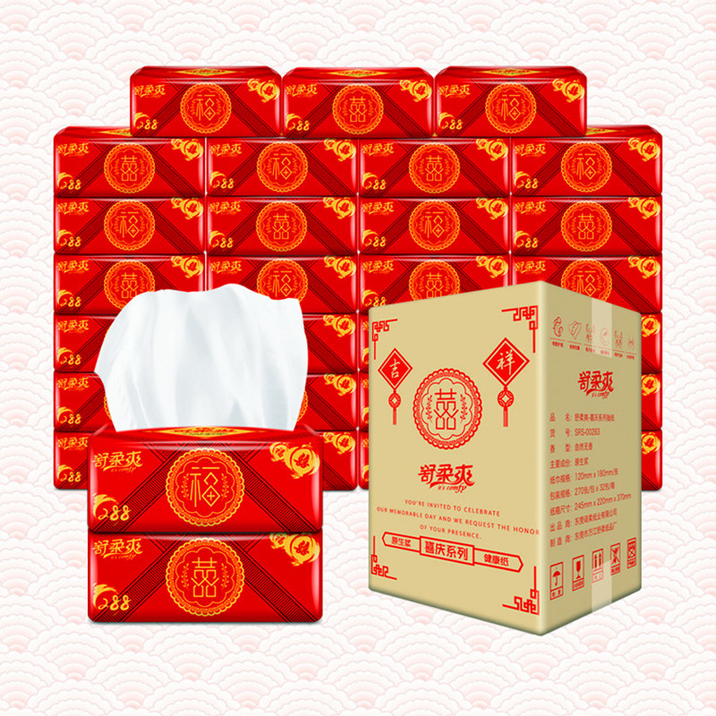 Shuu Shuang Happy Affair Extraction Style Toilet Paper Whole Box 32 Pack 90 Lucky Character Fu Character napkin Wedding Wedding Banquet wedding mat Special paper