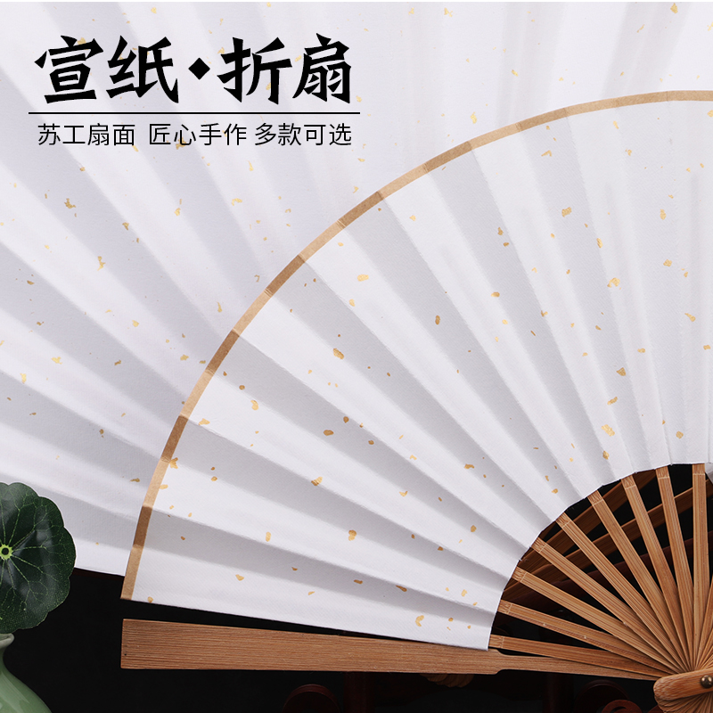 Rice paper folding fan blank fan Chinese style men's and women's style sprinkled gold rice paper mountain hemp cooked Xuan bamboo festival mahogany chicken wing wood folding fan book French painting works painting DIY rice paper works paper fan