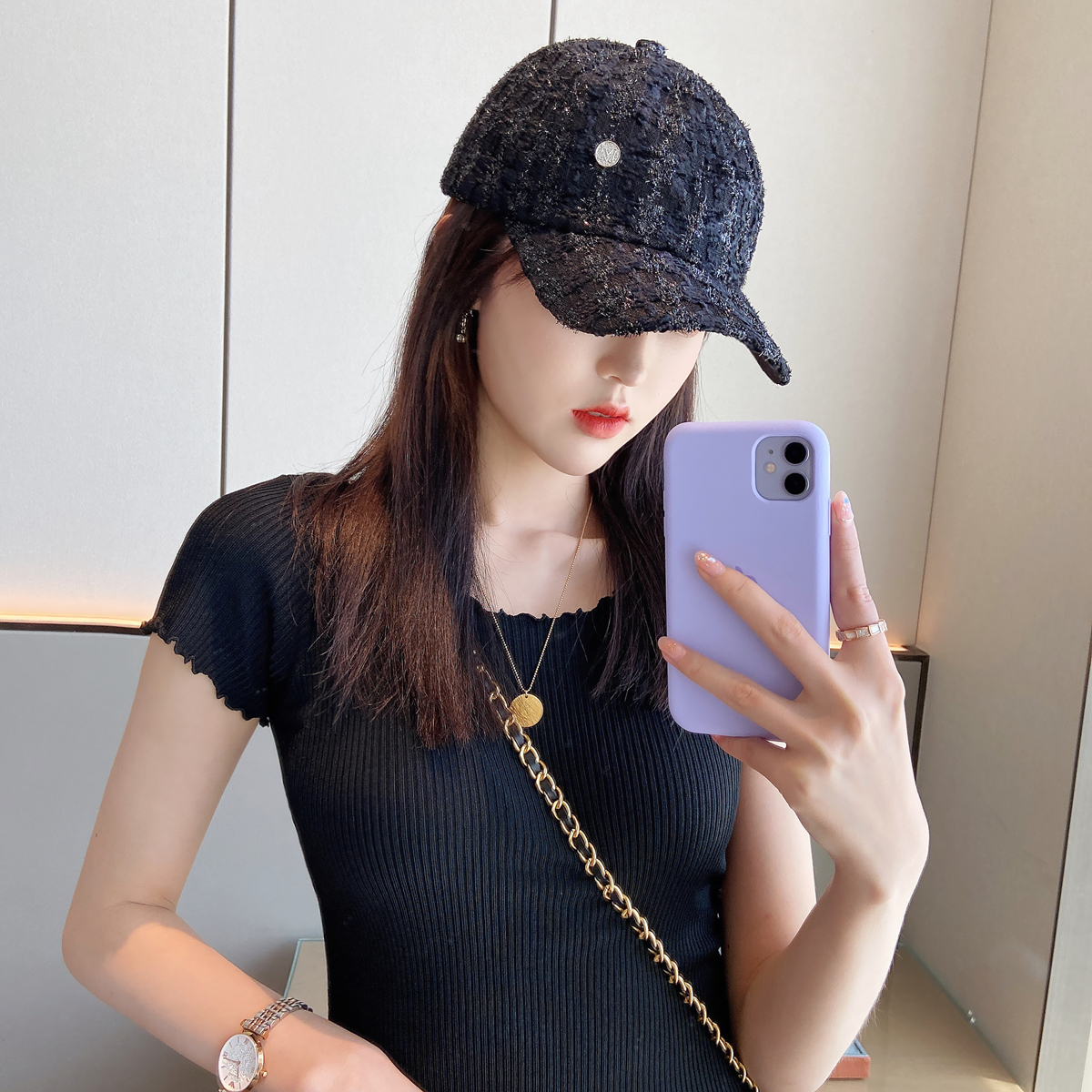 Xiaolujia Korean summer wild small fragrance bright silk baseball cap female face small ins net red sunshade cap