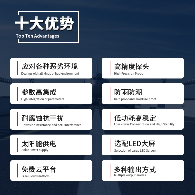 Illumination sensor Noise sensor Temperature and humidity sensor Barometric pressure sensor Carbon monoxide 120 Carbon dioxide sensor Rain and snow 106 Rain and snow heating 182 Polycarbon wind direction