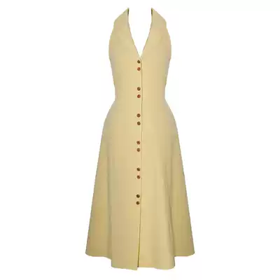 Beautiful Emperor chick yellow single-breasted French retro sleeveless shoulder shirt dress
