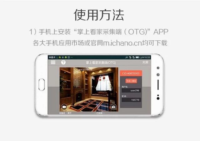 Handheld mobile phone connected to usb camera to remotely view the OTG acquisition terminal software activation code
