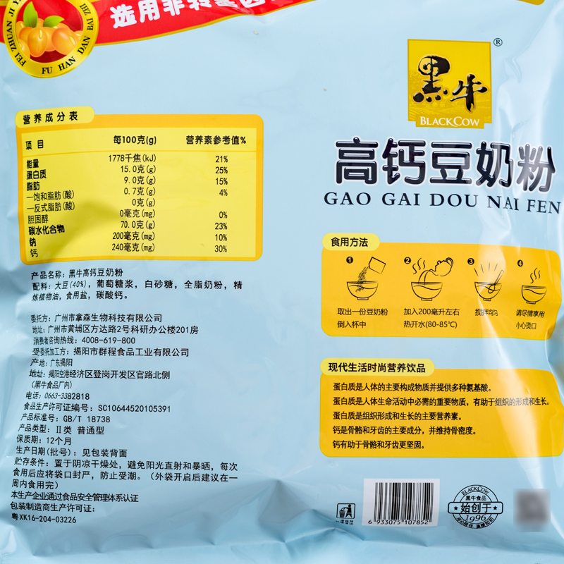 Black Cow High Calcium Soy Milk Powder 420g Bag (14 Sachets) Instant Breakfast Brew Soy Milk Meal Replacement Soybean Instant Powder