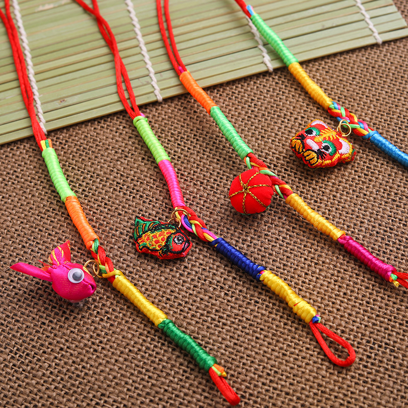 Red rope five colorful rope children on the end of the Dragon Boat Festival Children May Dragon Boat May End of the afternoon Children's glutinous rice dumplings handmade by children