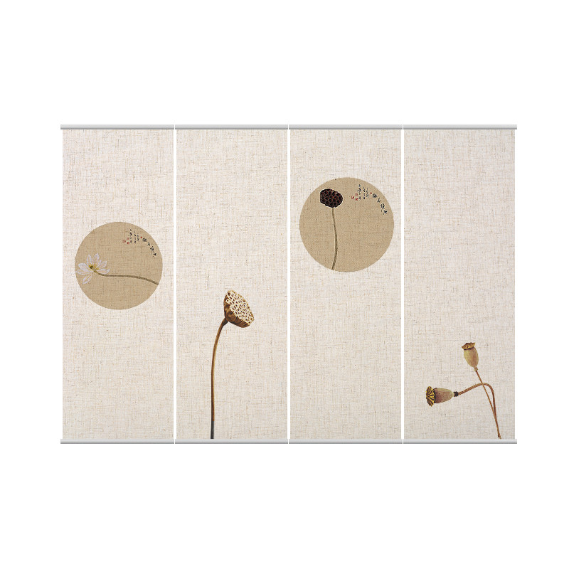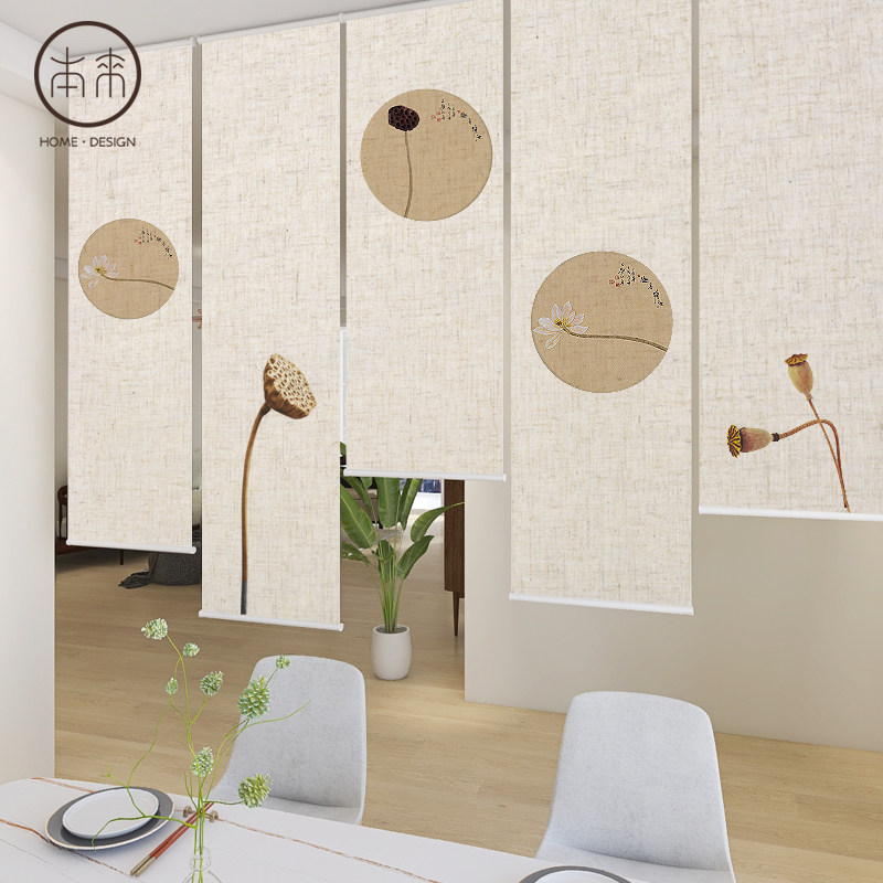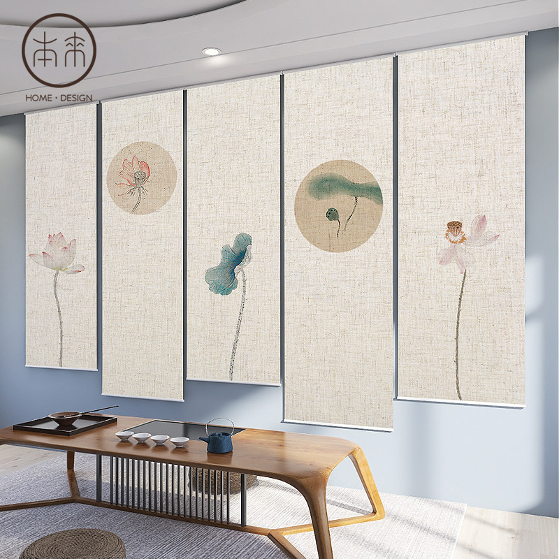 Linen roller blinds, teahouse, Japanese style, new Chinese curtains, partitions, custom printing, no-hole, shading, lotus, zen decoration