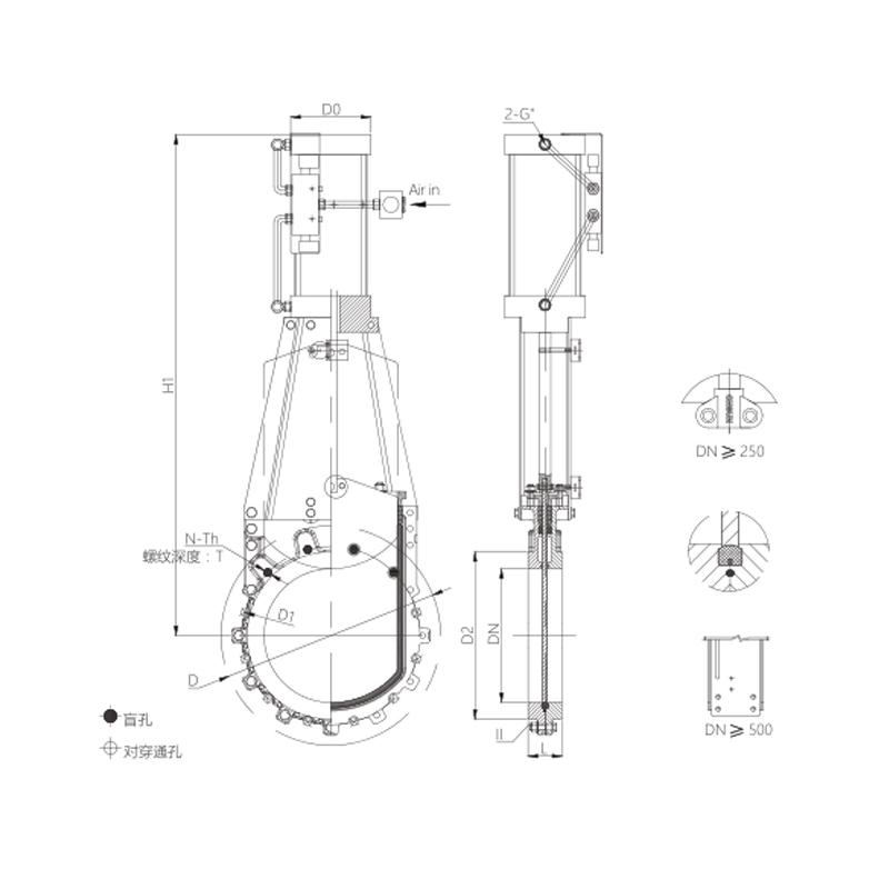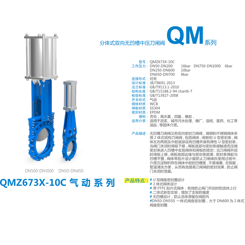 Cast steel plugboard valve QMZ673X-10C Pneumatic Two-way bidirectional no-groove knife gate stainless steel dn50